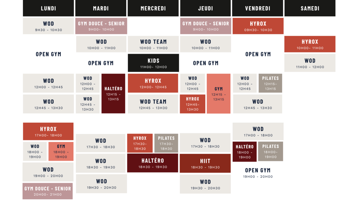 Des cours variés, des horaires flexibles : à vous de jouer ! Notre box est ouverte du lundi au samedi et vous propose de nombreux horaires.